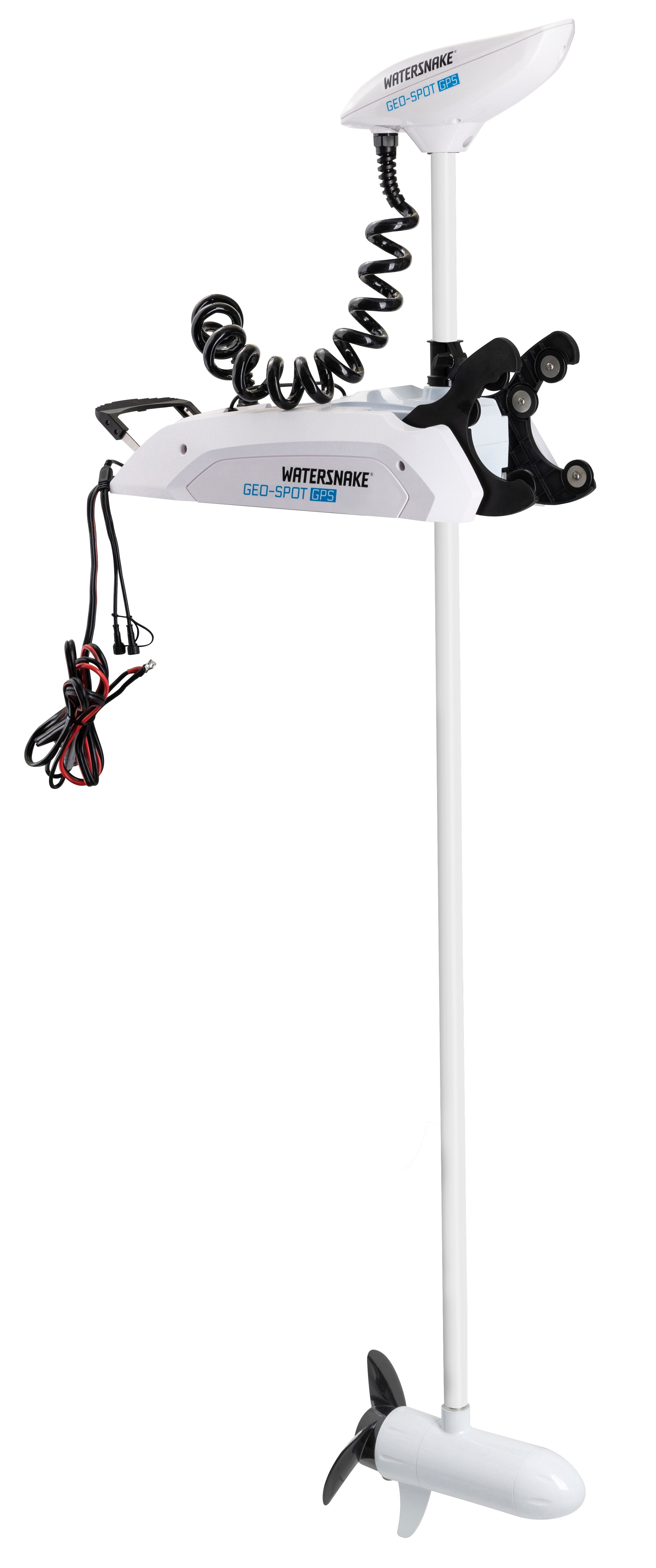Los motores de montaje en proa Watersnake Geo-Spot de 80 lb son el siguiente paso en motores con GPS, con características como Modo Ancla, Modo Piloto, Modo de Navegación y Modo Jog.